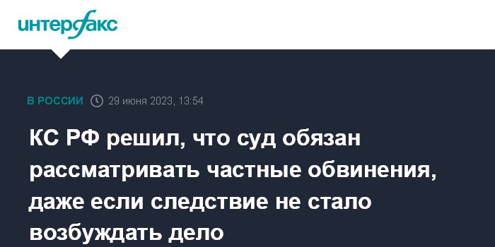 КС РФ решил, что суд обязан рассматривать частные обвинения, даже если следствие не стало возбуждать дело