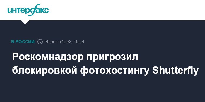 Москва. 30 июня. INTERFAX.RU - Роскомнадзор (РКН) потребовал от американского фотохостинга Shutterfly удалить изображения, признанные в РФ запрещенным контентом, иначе регулятор заблокирует его сайт в РФ, сообщили "Интерфаксу" в РКН.