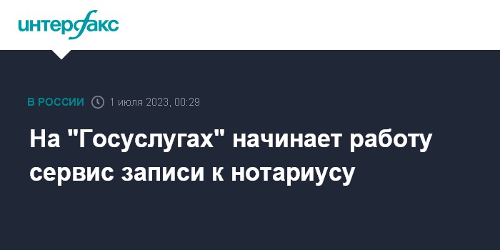 "С 1 июля у жителей 75 субъектов РФ появилась дополнительная опция - запись к нотариусу через портал "Госуслуг" посредством сервиса "Универсальная запись к нотариусу", где можно выбрать удобную для себя нотариальную контору, выяснить, какие документы требуются по конкретному нотариальному действию и заранее направить их на проверку нотариусу", - рассказали "Интерфаксу" в Федеральной нотариальной палате (ФНП).
