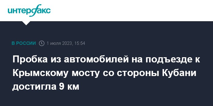 Москва. 1 июля. INTERFAX.RU - Очередь из машин на подъезде к Крымскому мосту со стороны Темрюкского района увеличилась до 9 км, сообщает в субботу краевой оперштаб в своем телеграм-канале.