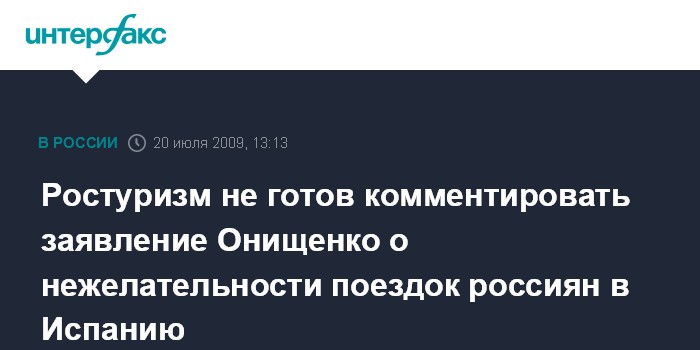 Ростуризм не готов комментировать заявление Онищенко о нежелательности поездок россиян в Испанию