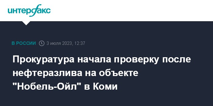 "Прокуратура организовала проверку в связи с происшествием на нефтесборном коллекторе ООО "Нобель-Ойл", в результате которого произошло попадание нефтесодержащих продуктов на рельеф местности и в реку Колва", - говорится в сообщении.