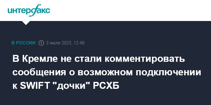 В Кремле не стали комментировать сообщения о возможном подключении к SWIFT "дочки" РСХБ
