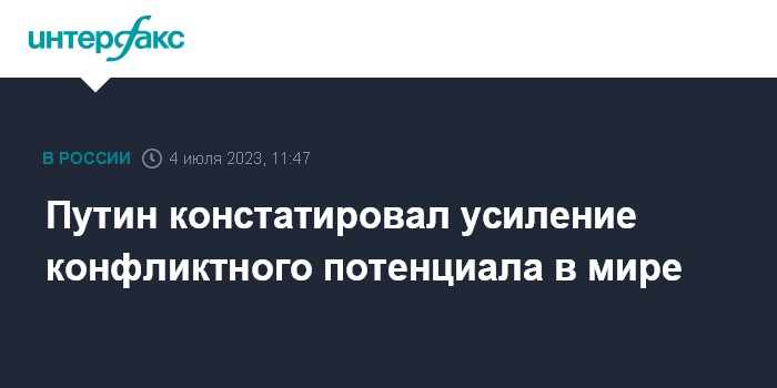 Москва. 4 июля. INTERFAX.RU - Президент Владимир Путин заявил на саммите ШОС, что в мире нарастает конфликтный потенциал и Россия ощущает это на себе.