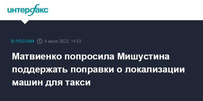 Матвиенко попросила Мишустина поддержать поправки о локализации машин для такси