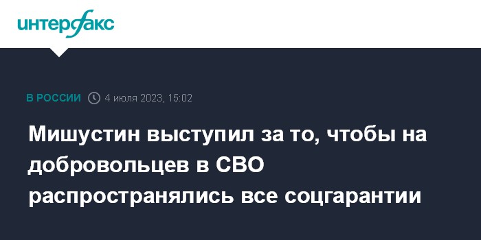 Мишустин выступил за то, чтобы на добровольцев в СВО распространялись все соцгарантии