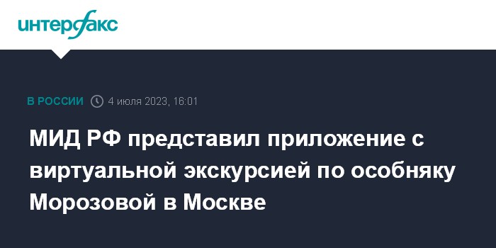 МИД РФ представил приложение с виртуальной экскурсией по особняку Морозовой в Москве