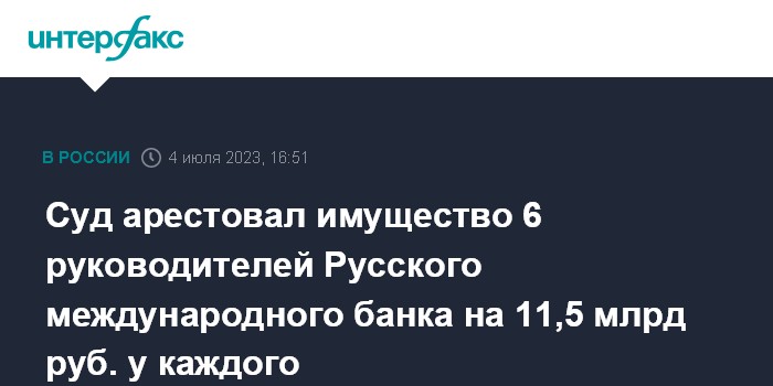 Суд арестовал имущество 6 руководителей Русского международного банка на 11,5 млрд руб. у каждого