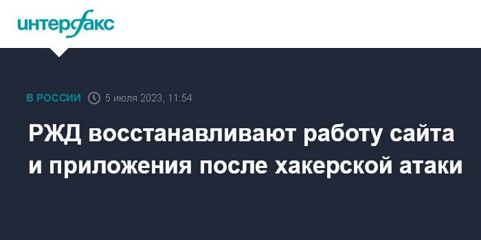 РЖД восстанавливают работу сайта и приложения после хакерской атаки