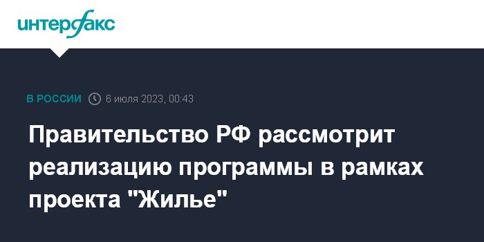 Правительство РФ рассмотрит реализацию программы в рамках проекта "Жилье"