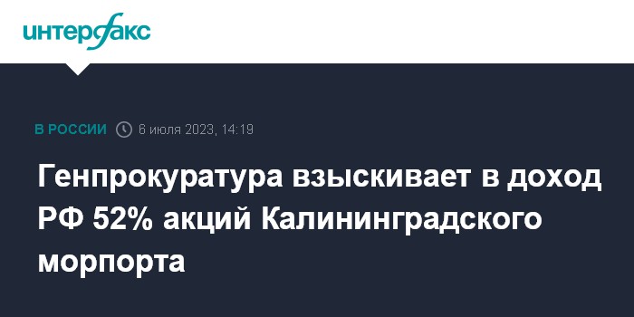 Как сообщалось, в мае суд Калининградской области взыскал в доход государства 46,5% акций КМТП по иску Генпрокуратуры.