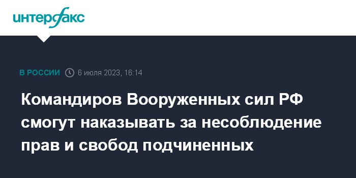 Командиров Вооруженных сил РФ смогут наказывать за несоблюдение прав и свобод подчиненных