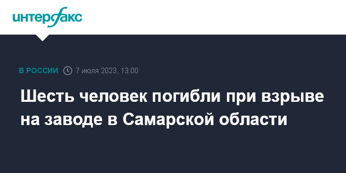 Шесть человек погибли при взрыве на заводе в Самарской области