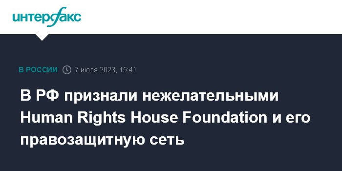 Москва. 7 июля. INTERFAX.RU - Генеральная прокуратура РФ признала нежелательной на территории России деятельность международной организации из Норвегии Human Rights House Foundation, а также ряда неправительственных организаций, входящих в созданную ей правозащитную сеть, сообщили "Интерфаксу" в пресс-службе ведомства.