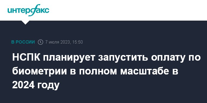 Москва. 7 июля. INTERFAX.RU - Национальная система платежных карт (НСПК) намерена запустить оплату по биометрии в полном масштабе в 2024 году, сказал глава НСПК Владимир Комлев в ходе Финансового конгресса Банка России.
