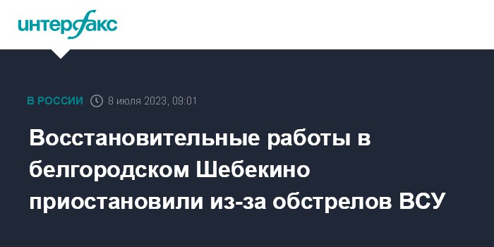 Восстановительные работы в белгородском Шебекино приостановили из-за обстрелов ВСУ
