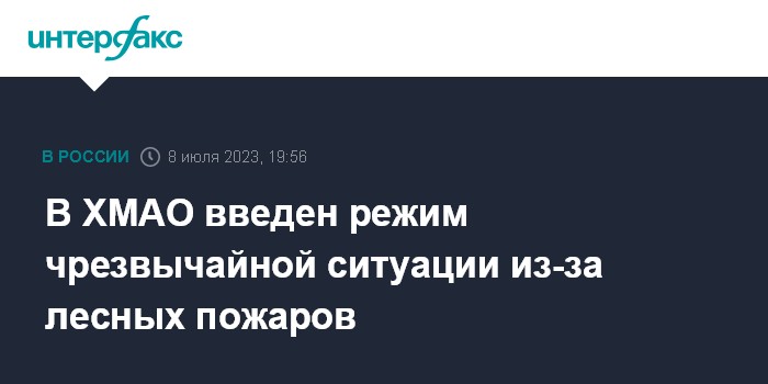 Москва. 8 июля. INTERFAX.RU - На территории Ханты-Мансийского автономного округа с субботы введен режим чрезвычайной ситуации в связи с лесными пожарами.