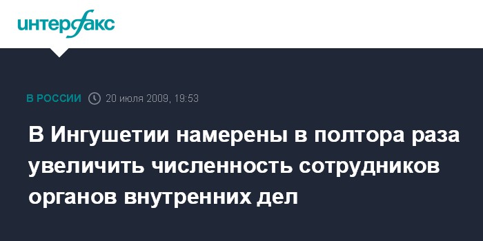 Магас. 20 июля. INTERFAX.RU - Исполняющий обязанности президента Ингушетии Рашид Гайсанов заявил, что власти республики обратились в министерство внутренних дел России с просьбой увеличить в полтора раза численность сотрудников органов внутренних дел в Ингушетии.