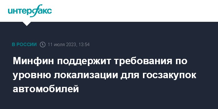 Минфин поддержит требования по уровню локализации для госзакупок автомобилей