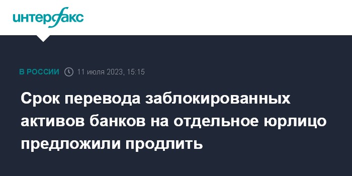 Срок перевода заблокированных активов банков на отдельное юрлицо предложили продлить