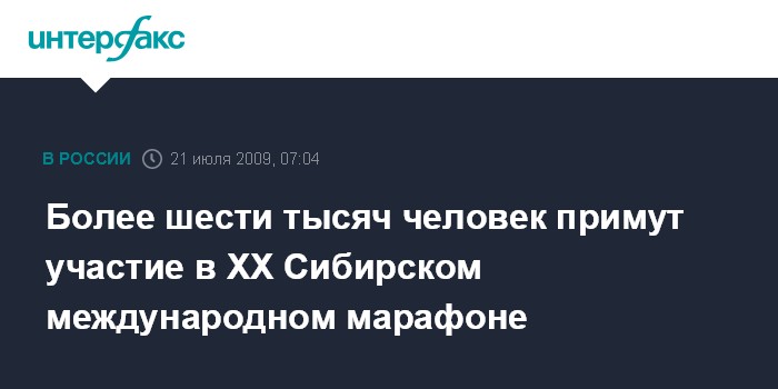Омск. 21 июля. ИНТЕРФАКС-СИБИРЬ - Более 6,3 тыс. человек подали заявку на участие в XX Сибирском международном марафоне, сообщает пресс-служба областного правительства во вторник.