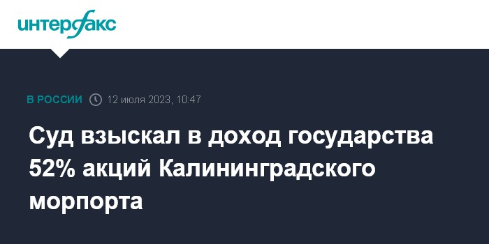 Москва. 12 июля. INTERFAX.RU - Центральный районный суд Калининграда по иску Генпрокуратуры взыскал в доход государства 52% акций АО "Калининградский морской торговый порт" (КМТП, один из крупнейших стивидоров в порту Калининграда), сообщили "Интерфаксу" в пресс-службе Калининградского областного суда.