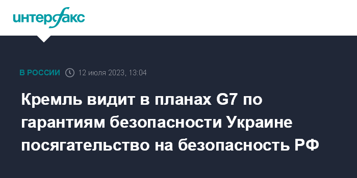 Кремль видит в планах G7 по гарантиям безопасности Украине посягательство на безопасность РФ