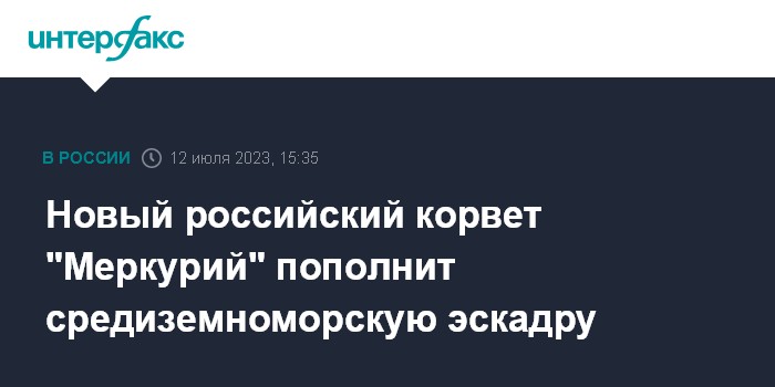 Москва. 12 июля. INTERFAX.RU - Корвет "Меркурий", который в мае вошел в состав Черноморского флота, пополнит российскую эскадру на востоке Средиземного моря. Об этом сообщил главнокомандующий Военно-морским флотом (ВМФ) РФ Николай Евменов.