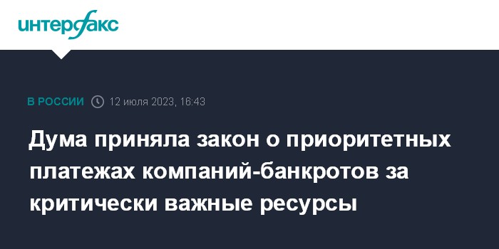 Дума приняла закон о приоритетных платежах компаний-банкротов за критически важные ресурсы