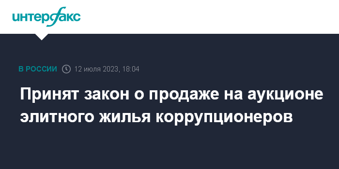 Москва. 12 июля. INTERFAX.RU - Госдума приняла в третьем чтении законопроект № 310877-8, который позволит продать на аукционе 146 элитных квартир, конфискованных у коррупционеров, а деньги направить в федеральный бюджет, в то время как сейчас вся конфискованная недвижимость должна передаваться по договорам социального найма малоимущим.