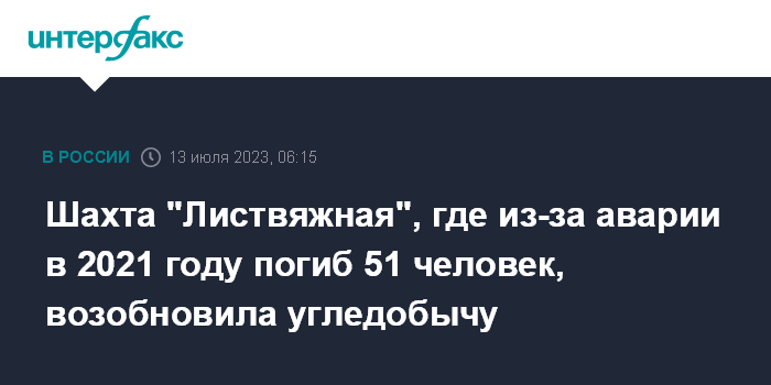 Шахта "Листвяжная", где из-за аварии в 2021 году погиб 51 человек, возобновила угледобычу