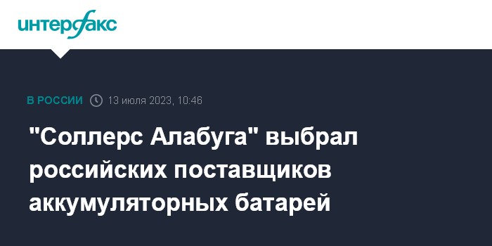 Москва. 13 июля. INTERFAX.RU - Автопроизводитель "Соллерс Алабуга" выбрал российских поставщиков аккумуляторных батарей для установки на автомобили бренда Sollers.