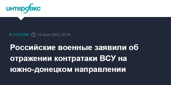Российские военные заявили об отражении контратаки ВСУ на южно-донецком направлении