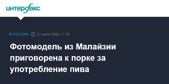 Москва. 21 июля. INTERFAX.RU - Малазийская модель Картика Сари Деви Шукарно приговорена к шести ударам пальмовыми розгами за употребление пива в баре на севере страны, пишет во вторник малазийская газета "Нью-Стрейтс таймс".