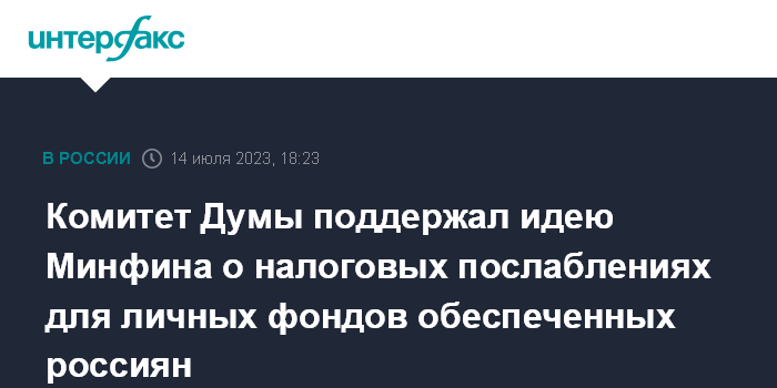 Комитет Думы поддержал идею Минфина о налоговых послаблениях для личных фондов обеспеченных россиян