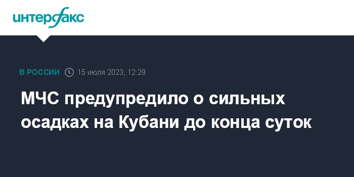 Москва. 15 июля. INTERFAX.RU - Штормовое предупреждение действует на территории Краснодарского края, до конца суток ожидаются сильные ливни с грозой, градом и шквалистым ветром, сообщает в субботу пресс-служба ГУ МЧС России по региону.