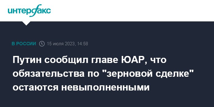 Путин сообщил главе ЮАР, что обязательства по "зерновой сделке" остаются невыполненными