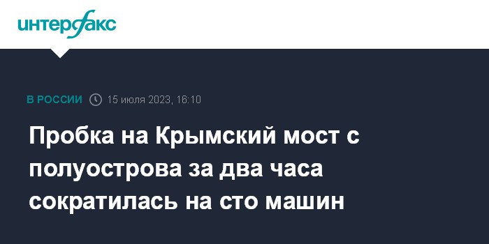 Москва. 15 июля. INTERFAX.RU - Очередь перед Крымским мостом со стороны Крыма сократилась за последние два часа всего на сто машин - к 16:00 в ожидании досмотра здесь находится 500 автомобилей, сообщает телеграм-канал, освещающий ситуацию на автомобильных подходах к мосту.