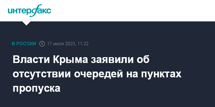 Москва. 17 июля. INTERFAX.RU - Заметных очередей на трех пунктах пропуска на административной границе Крыма с Херсонской областью, которые предстоит пройти при использовании сухопутного маршрута через новые регионы, нет, сообщил советник главы республики Олег Крючков.