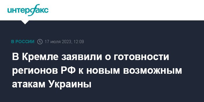 В Кремле заявили о готовности регионов РФ к новым возможным атакам Украины