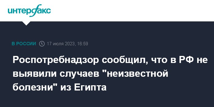 Роспотребнадзор сообщил, что в РФ не выявили случаев "неизвестной болезни" из Египта