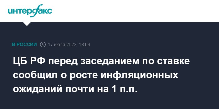 ЦБ РФ перед заседанием по ставке сообщил о росте инфляционных ожиданий почти на 1 п.п.