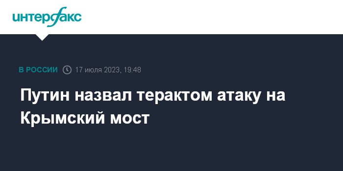 Москва. 17 июля. INTERFAX.RU - Президент Владимир Путин на совещании назвал терактом взрыв на Крымском мосту.