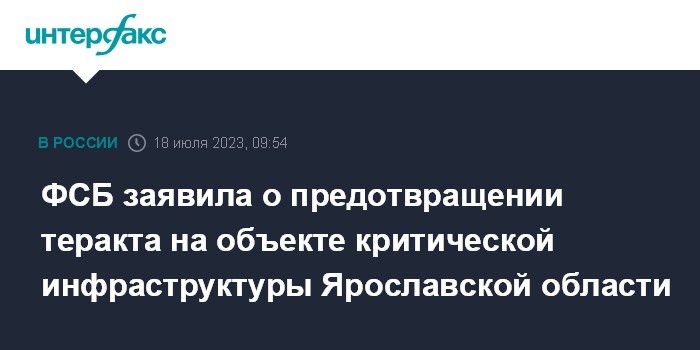 ФСБ заявила о предотвращении теракта на объекте критической инфраструктуры Ярославской области