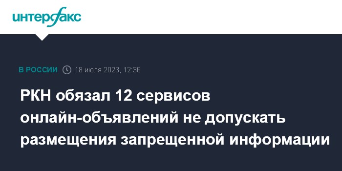 РКН обязал 12 сервисов онлайн-объявлений не допускать размещения запрещенной информации
