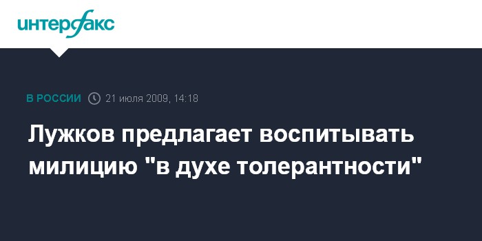 Москва. 21 июля. INTERFAX.RU - Сотрудников московской милиции необходимо воспитывать в духе межнациональной толерантности, заявил мэр столицы Юрий Лужков на заседании городского правительства во вторник.
