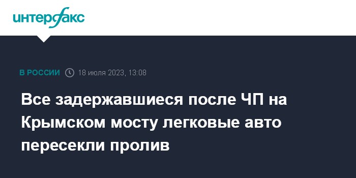 Москва. 18 июля. INTERFAX.RU - Все легковые автомобили, ожидавшие проезда через Крымский мост с обеих сторон после атаки, пересекли Керченский пролив, сообщил глава республики Сергей Аксенов.