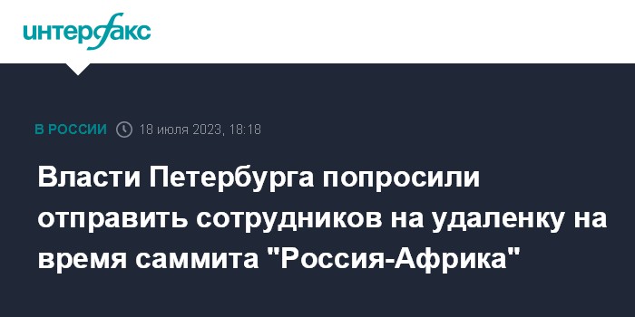 Власти Петербурга попросили отправить сотрудников на удаленку на время саммита "Россия-Африка"