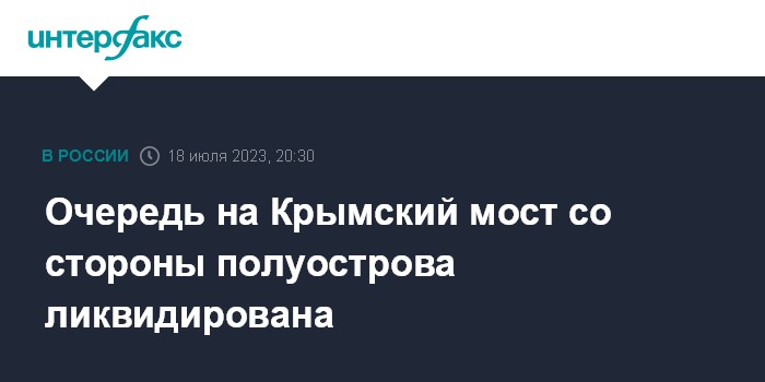 Москва. 18 июля. INTERFAX.RU - Пробка из машин перед досмотром на Крымском мосту ликвидирована со стороны полуострова, сообщает телеграм-канал, освещающий ситуацию на автомобильных подходах к мосту.