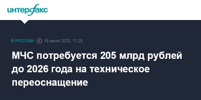 Москва. 19 июля. INTERFAX.RU - Министерству по чрезвычайным ситуациям на 2024-2026 годы дополнительно необходимо более 205 млрд рублей на программу технического переоснащения, заявил на правительственном часе в Совете федерации глава МЧС Александр Куренков.